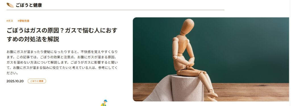 この度、「ごぼラボ」様の「ごぼうはガスの原因?ガスで悩む人におすすめの対処法を解説」の監修を行ないました。